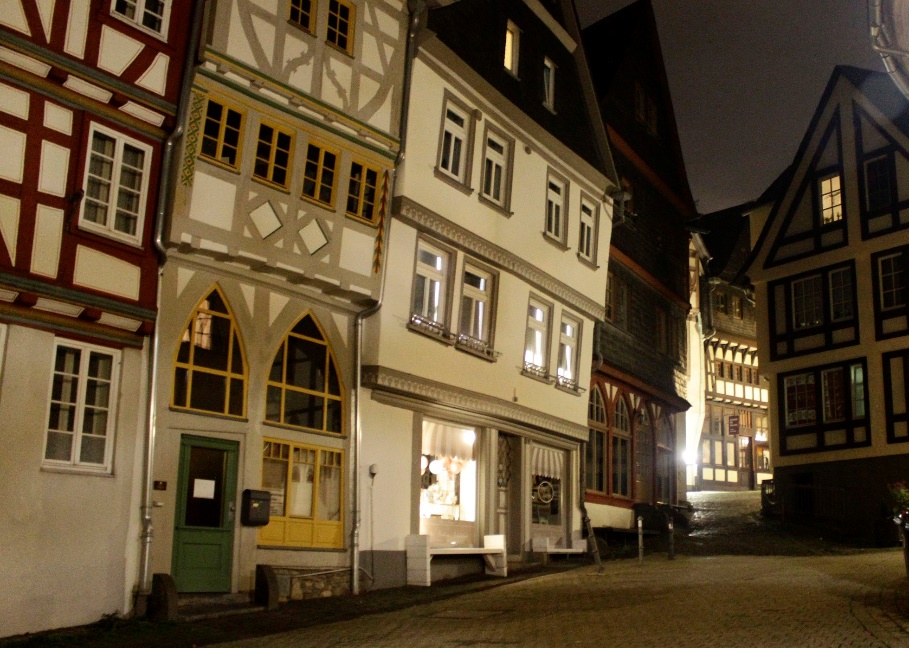 Den ersten Kontakt mit Limburg bekamen wir abends – und wir kamen ins Schwärmen für alte Häuser und besonders fürs Fachwerk.